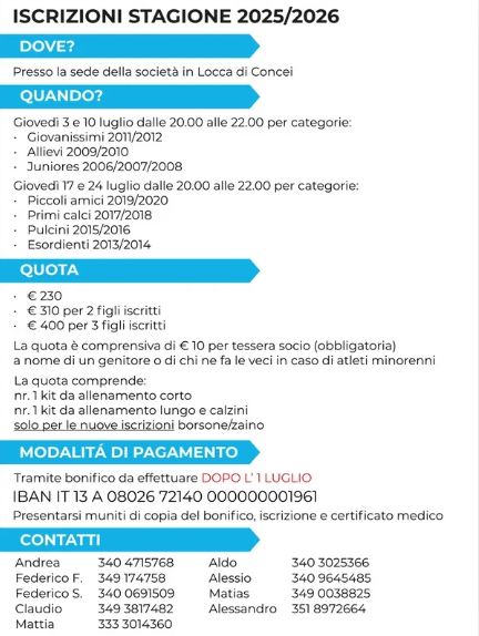 ISCRIZIONI STAGIONE 2025 / 2026 admin 1 Lug 2025 Eventi, News DOVE LA PASSIONE ED IL DIVERTIMENTO SCENDONO IN CAMPO ISCRIVITI QUI Previous Like Tweet +1